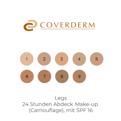Coverderm Perfect Legs ist ein revolutionäres, wasserfestes und strapazierfähiges Abdeck Make-up (Camouflage) für den Beruf sowie für die Freizeit oder Ferien. Seine hohe Haftkraft und das natürliche Aussehen lässt Makel und Unvollkommenheiten an Beinen und am Körper verschwinden. Es sorgt für eine samtige Textur und lässt Ihre Beine jünger und ebenmässiger aussehen. Coverderm Perfect Legs ist sehr ergiebig und durch die elastische Konsistenz leicht aufzutragen. Coverderm Perfect Legs kann auch speziell nur punktuell bei Problemstellen/-zonen angewendet werden. Es ist wisch-, schwitz- und wasserfest, atmungsaktiv, hypoallergen sowie mit einem Sonnenschutzfaktor SPF 16 für den Schutz vor übermässiger schädlicher Sonnenstrahlungseinwirkung ausgestattet.